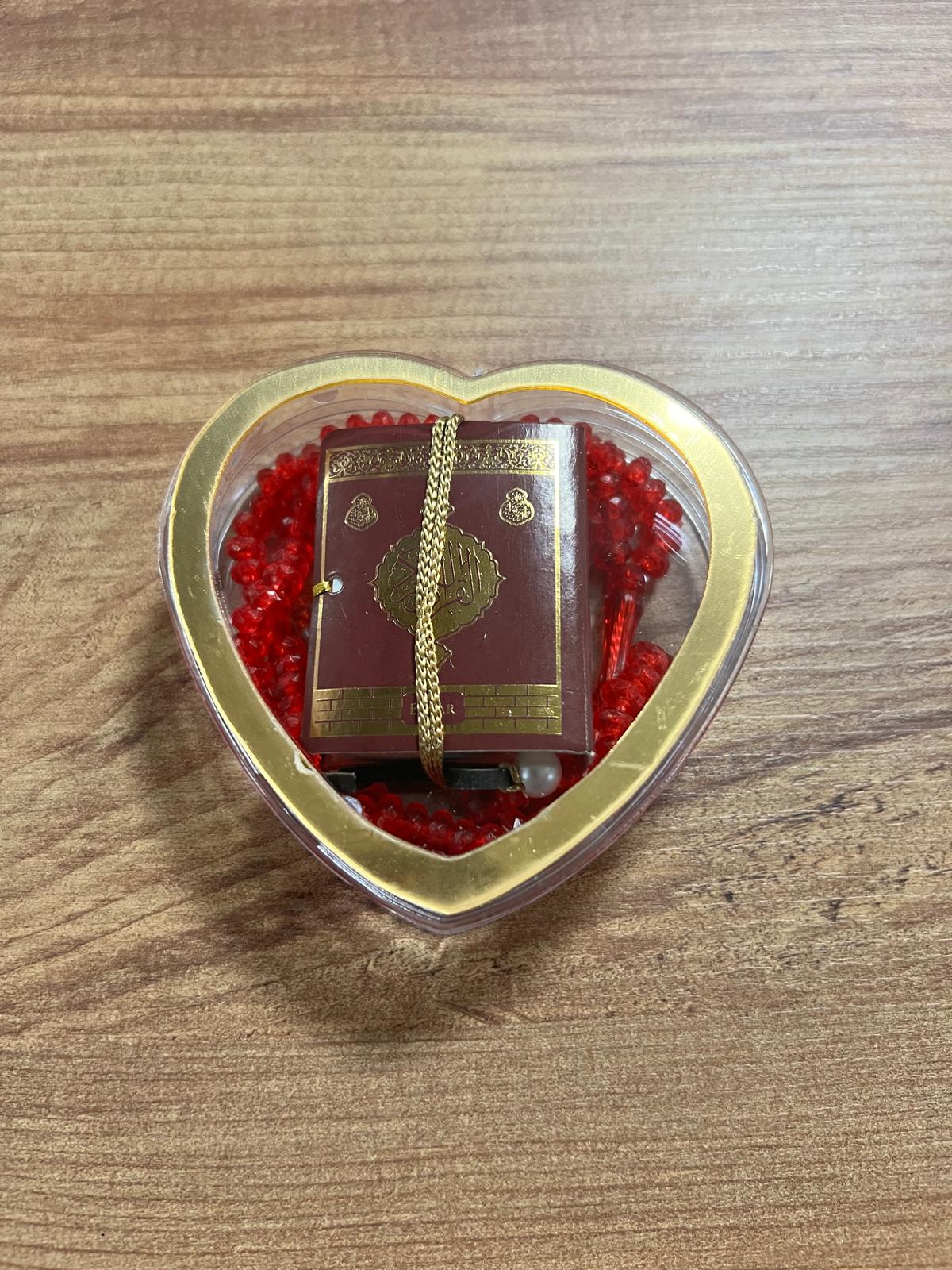 SHR KALP PLEKSİ MİKA KUTU TESBİHLİ MİNİ KUR'AN KIRMIZI